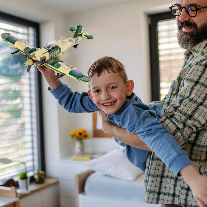 Construct your own Spitfire fighter jet with this military building block set. Build and explore your own military world. The blocks are made from ABS Plastic materials, ensuring durability and stability for each piece, as well as robustness for the final model. Printed stickers add rich color and detail to this airplane toy. Compatible for LEGO&major brands , this airplane set includes 331 pieces and is for boys aged 6-14 who are interested in aircraft and WW2 history. The Spitfire airplane stands over 3.6 inches (9 cm) high, 11.5 inches (29.1 cm) long, and 10 inches (25.4 cm) wide, offering endless creativity. For children, this toy opens up a path to improve their hands-on abilities and develop independent thinking skills, making it an inspiring present.