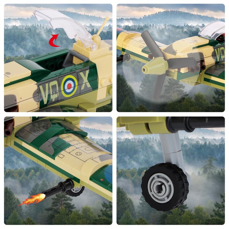 FANTASY&Co.Spitfire FighterJet Building Block with Pilot and Soldier Action Figures(331 pcs), WW2 Military Airplane, Present for Boys Age 6-12 & SetFans & Collectors,Compatible with Lego Planes Model
