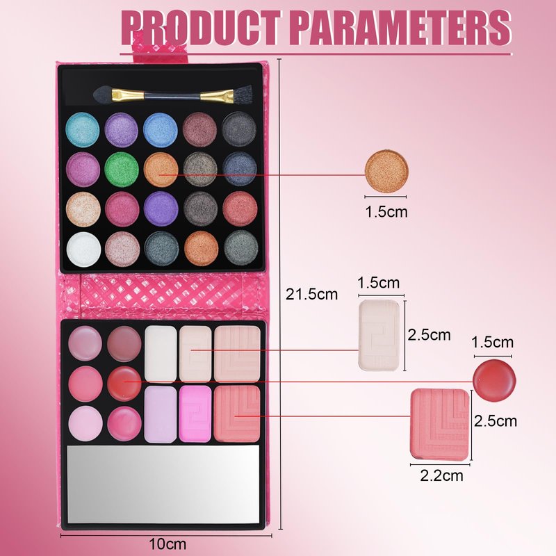 Includes Blush Powders, Eye shadows,lip gloss and lipstick creams. Ideal for many situation such as starters,cosplay or casting. Donβt waste your money on multiple makeups,all in one meet your needs.