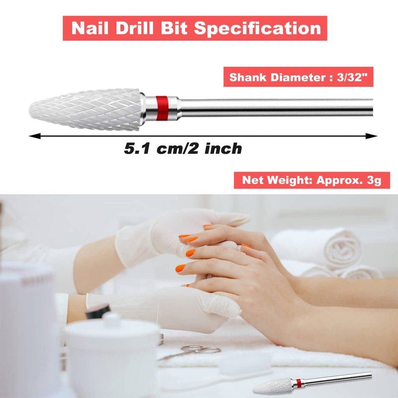 - 【3/32" Ceramic Nail Bit】Quantity: 1 piece | Fits 3/32'' (2.35 mm)Shank Size | Color: White | Grit: Fine | Quickly and perfectly achieve smoothly contoured nails.