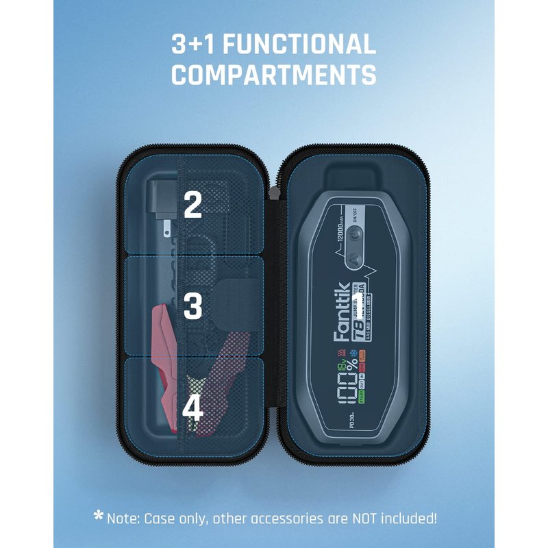 - 【Officially Customized】Particularly designed for Fanttik T8 jump starter, this car battery pack storage case is dedicated to protecting your T8 jump starter and other related accessories.