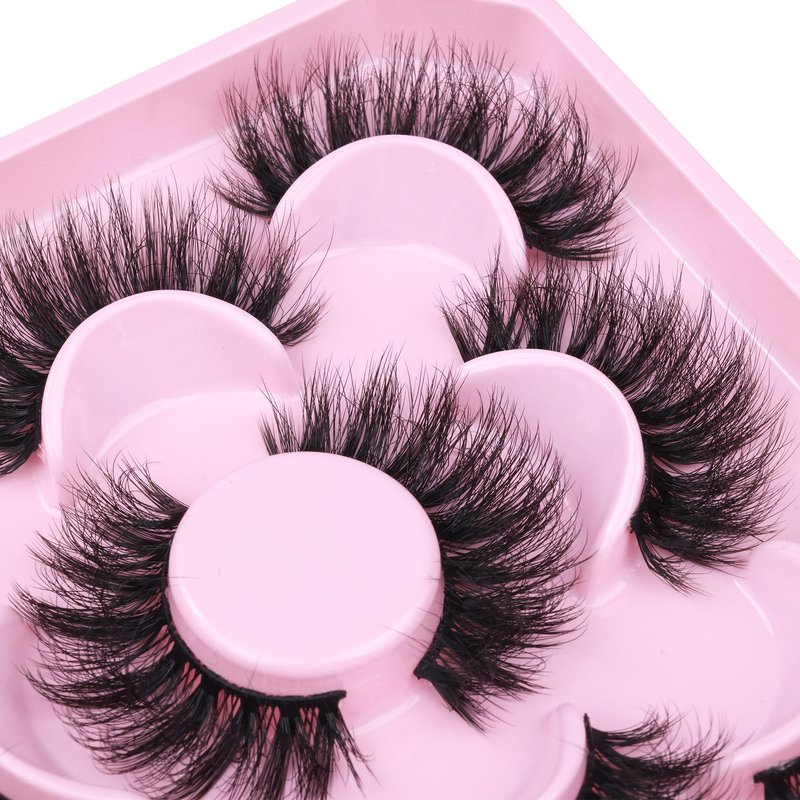 - ❤️ Fluffy fake lashes pack: Contains 5 pairs of high quality mink lashes, which are soft, fluffy stripes of false eyelashes. The fake eyelashes are made of mink-like fibers and have a matte texture that doesn't look like plastic.