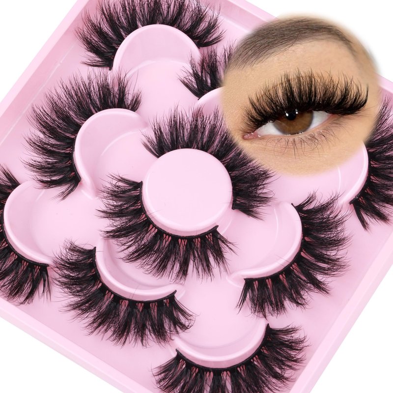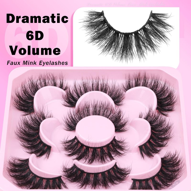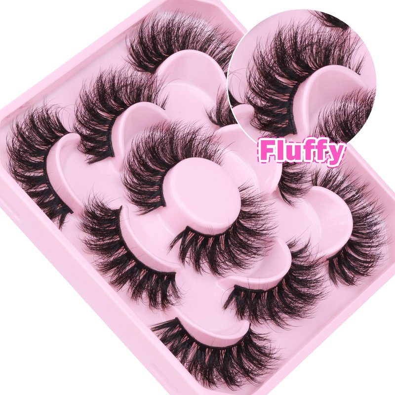 FANXITON Mink Lashes Fluffy 6D Volume False Eyelashes Fluffy Strip 15-18MM Fake Lashes 100% Handmade Lightweight 5 Pairs Pack Faux Mink Lashes (FD02)