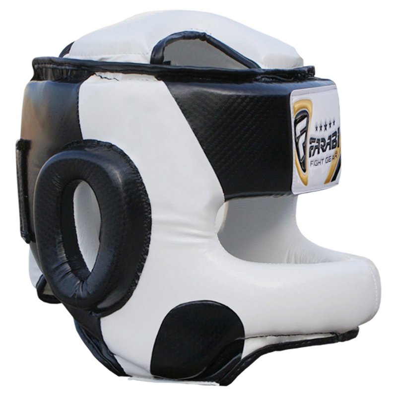 Farabi Sports Head Guard U Shape Boxing Headgear Kickboxing Martial Arts Training Boxing Helmet (L/XL, Black/White)