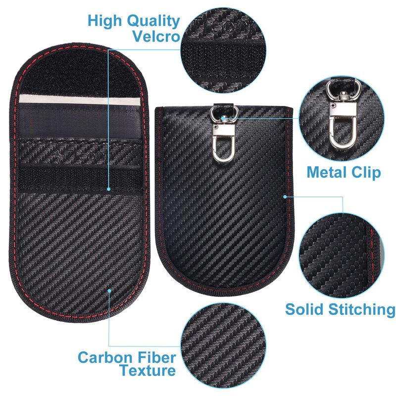 - ✔️【PREMIUM QUALITY】 TICONN faraday bag is constructed with premium carbon fiber textured material and two-layers of shielding materials packed in a gift box. It provides signal blocking functions as well as a luxurious fashionable appurtenance