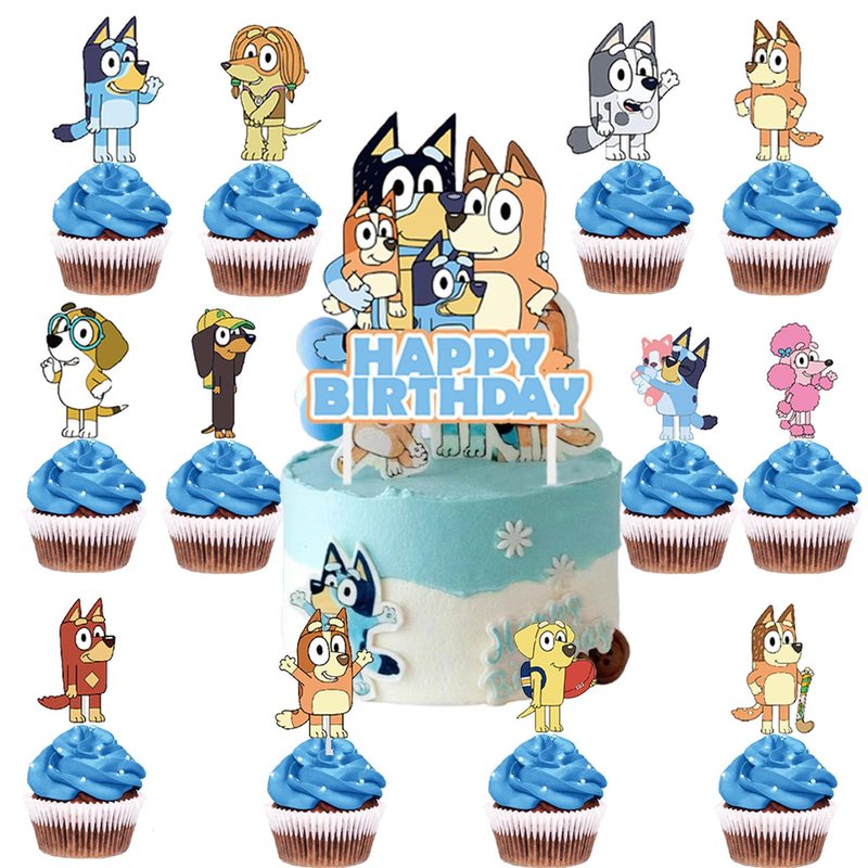 - BLUE DOG BIRTHDAY PARTY SUPPLIES: Happy Birthday Blue Dog themed cake topper and different characters cupcake toppers set, create fun-filled birthday party for kids