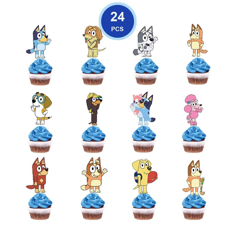 25PCS Blue Dog Cake Cupcake Topper Decorations Cartoon Dog Happy Birthday Party Supplies for Kids Party Favors Decorations Package set 1pcs Cake Topper 24pcs CupCake Topper