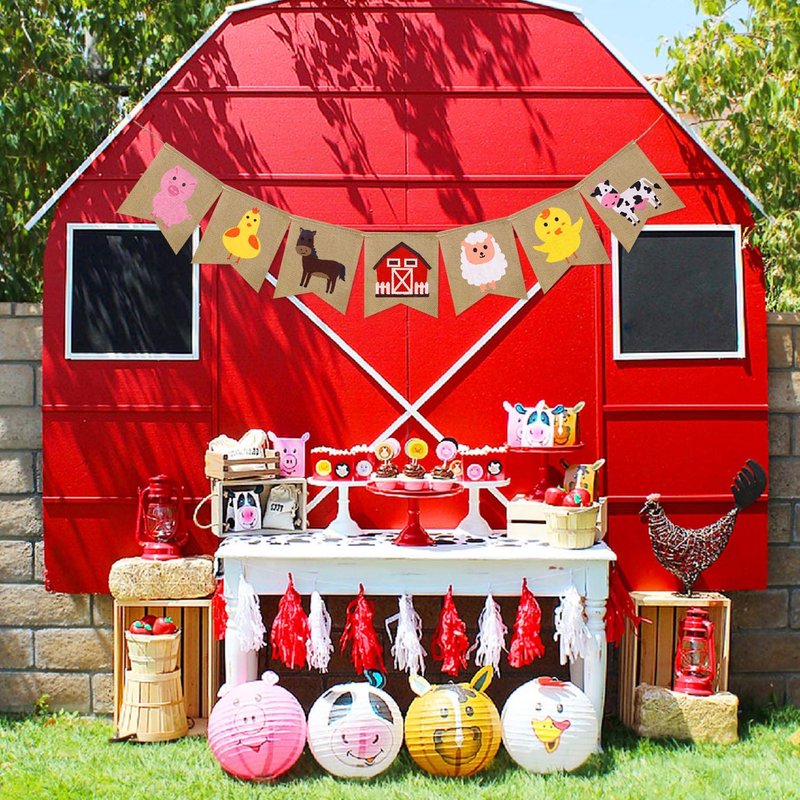 - Adorable Farm animal Party Banner: includes 7 lovely cartoon images which are definitely kid-friendly ( cow, duck, sheep, pig, chick, horse and a farmyard). Perfect for a farmhouse party, baby shower for boys or girls, 1st birthday party ...