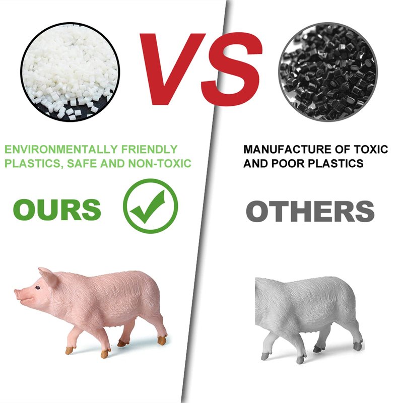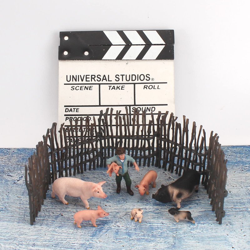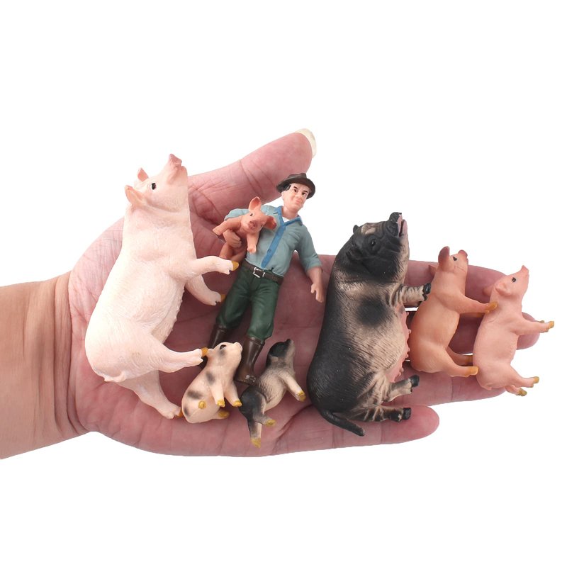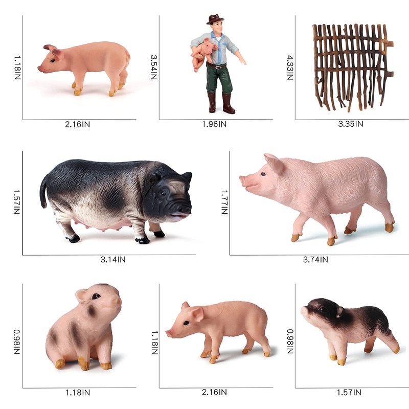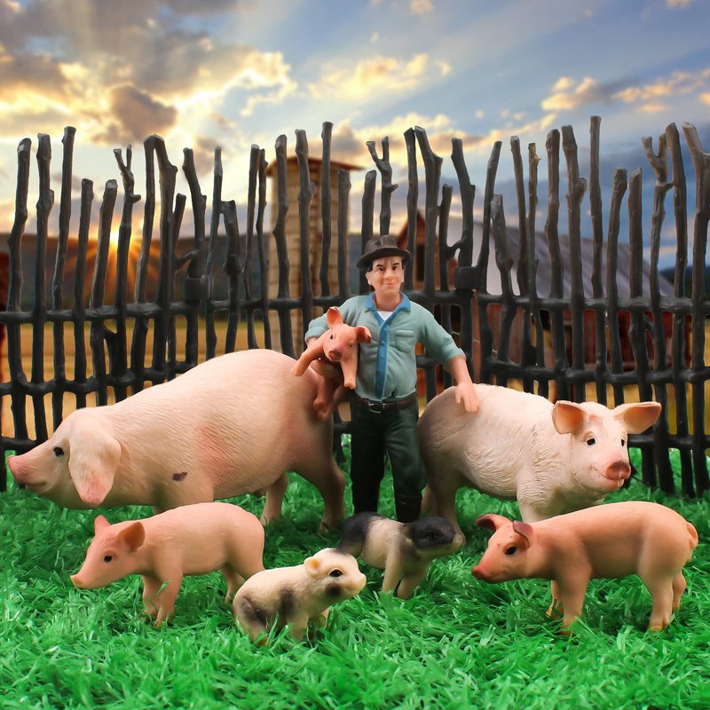 Farm Animal Model Figurine Playsets 12 PCS Pig Family Pig-Hugging Workers Wooden Fence Action Figures Toys for Kids