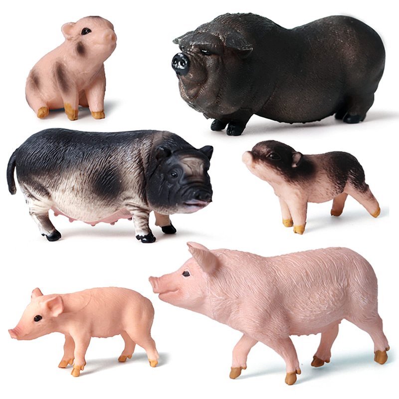Farm Animal Model Figurine Playsets 6 PCS Pig Family Action Figures Toys for Kids