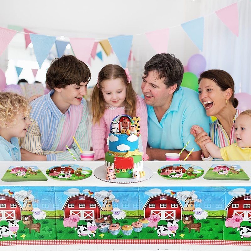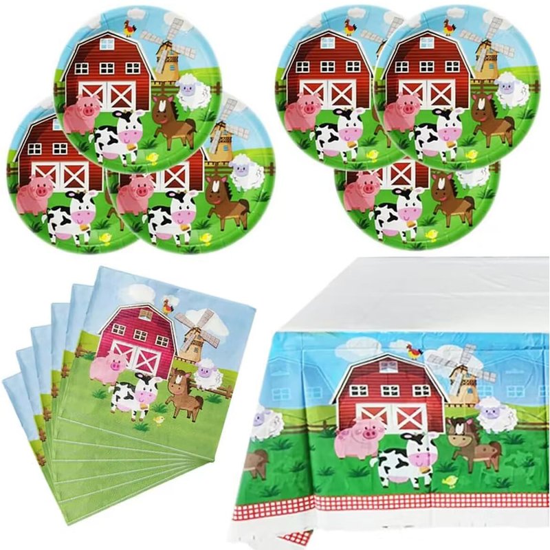 Farm Animal Party Tableware Set, Farmhouse 20 Plates and 20 Napkins and Tablecloth 71 '' x 42 '', Farm Animal Themed Party Decoration Supplies