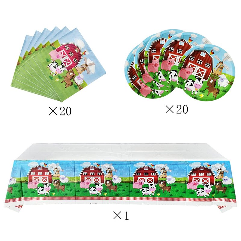 - 1.You will get: 20*Farm Animal dinner paper plates (7 inches), 20*Farm Animal napkins(6.7 inches), 1*Farm Animal Tablecloth (71" x 42.5").