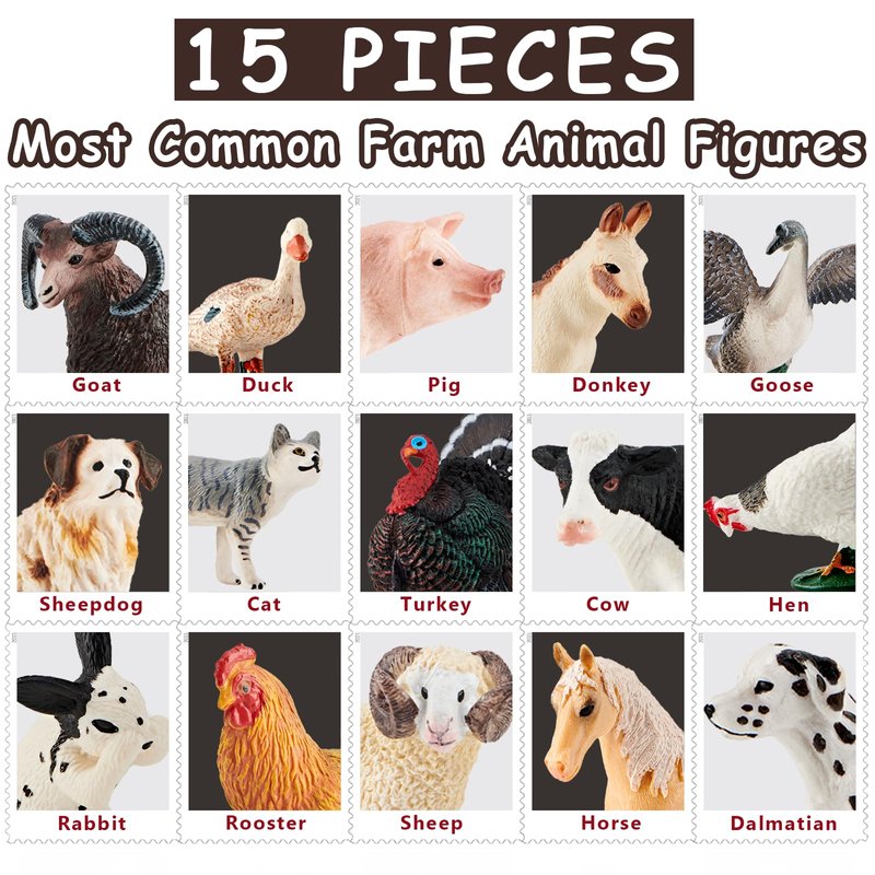 - Realistic Figure: The 15 Pcs farm animal toy set features highly detailed plastic figurines of the most common farm animals like cows, horses, sheep, and more.