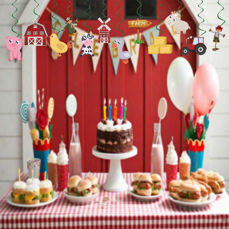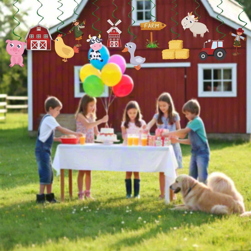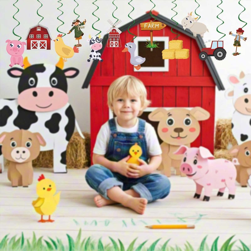 Farm Animals Party Decorations Farm Birthday Hanging Swirls, Assembled and Ready to Use, Countryside Party Decor Supplies Hanging Swirl Kids Party Streamers 24pcs Baby Shower Party Decor Banner