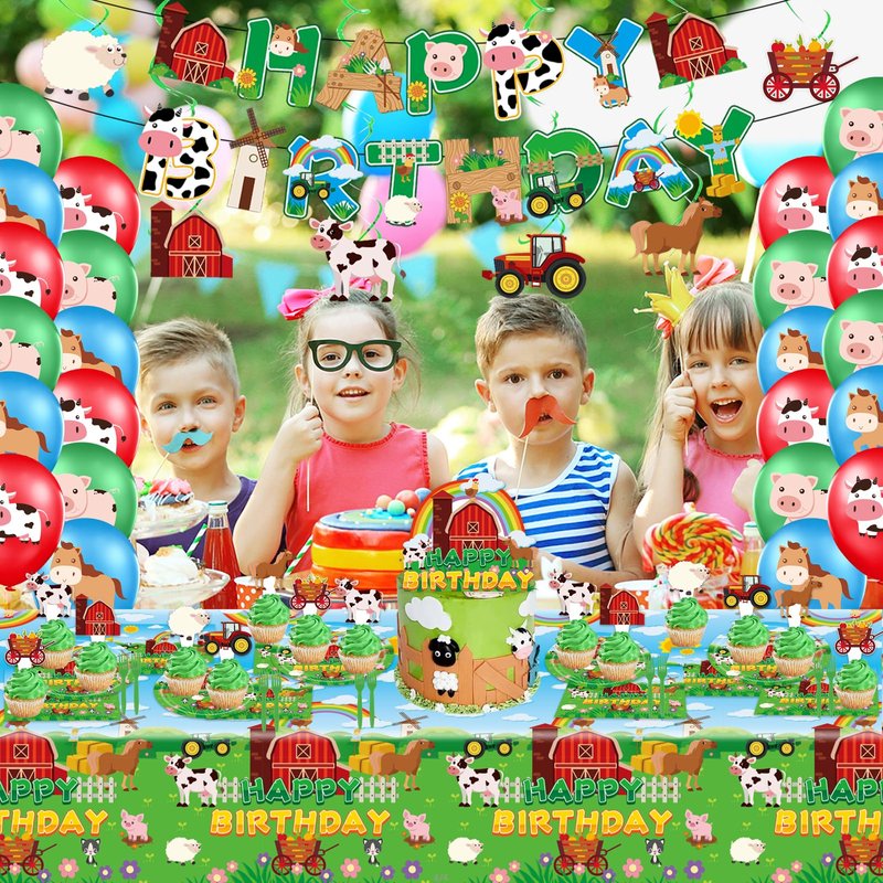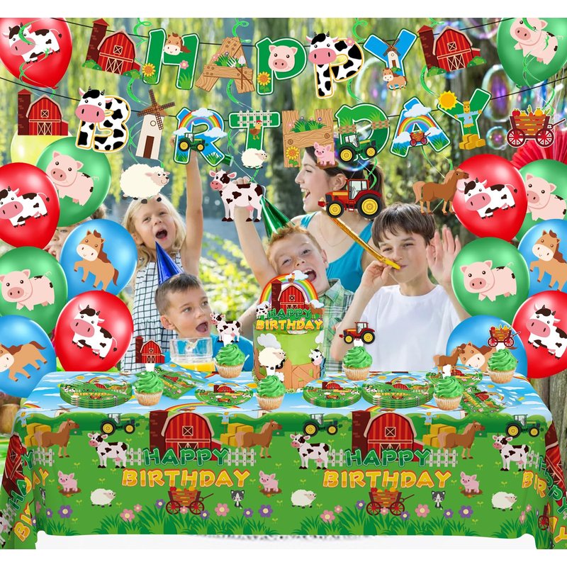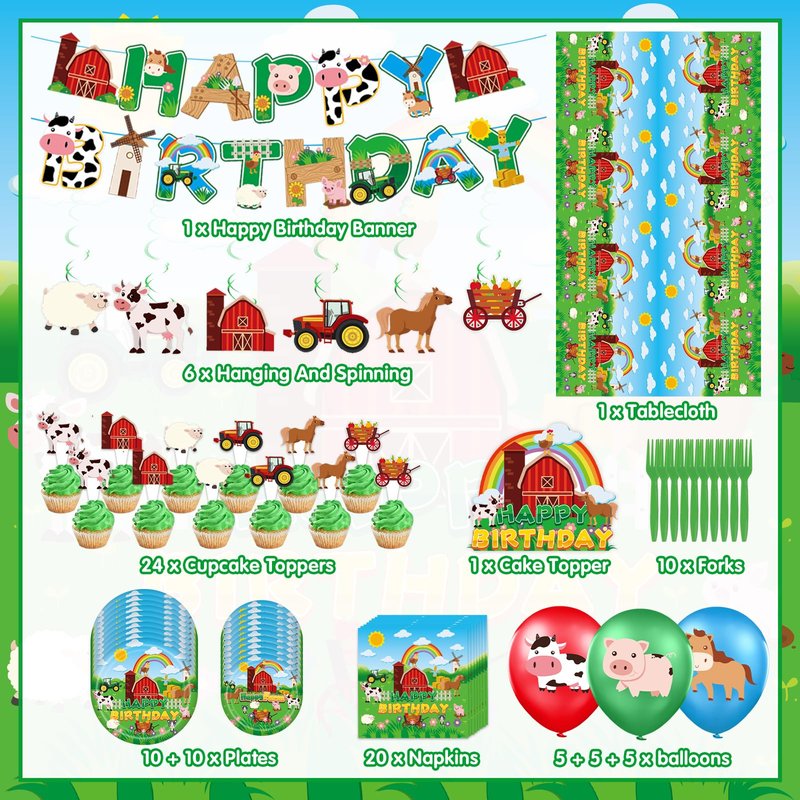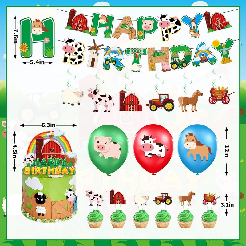 Farm Animals Party Supplies,Farm Barn Animal Themed Party Decorations & Tableware Set,Include Banner,Hanging Swirl,Balloons,Plates,Napkins,and More,for Farm Animals Theme Birthday Party Decorations