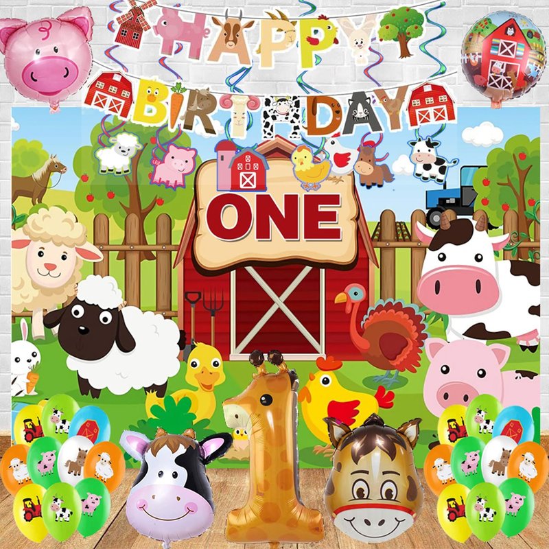Farm Animals Theme Party Decorations One Number Balloons Farm Barn Animals Backdrop Banner Farmhouse Animals Decor Party Farm Animal Balloons 1st Birthday Party