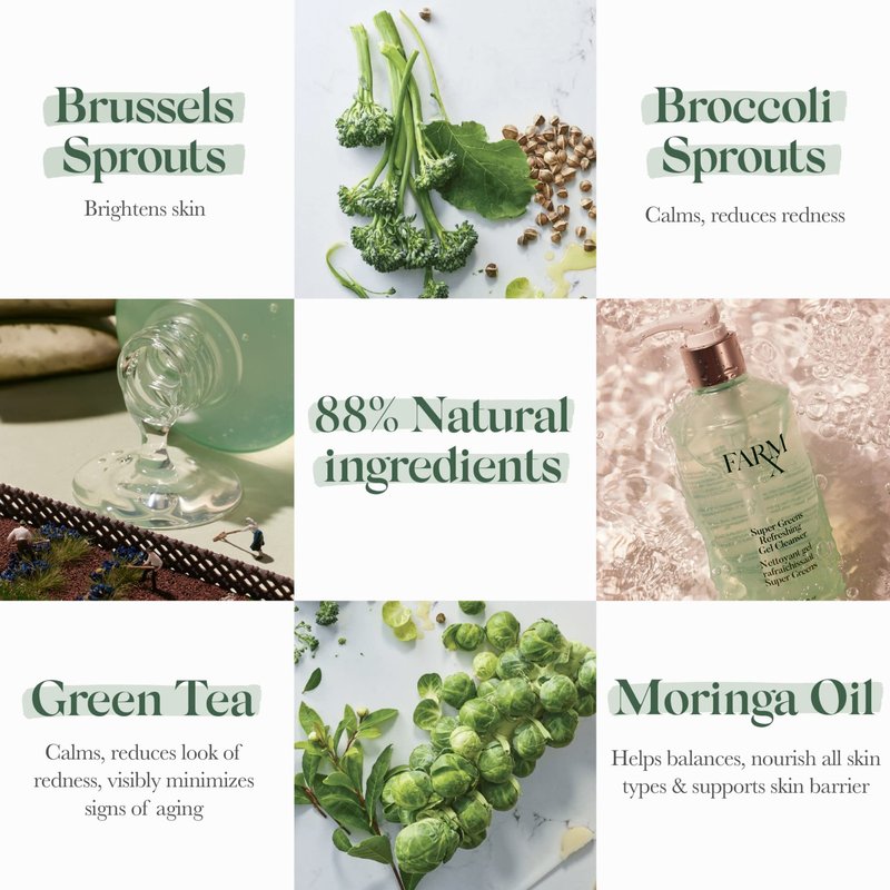 - NATURAL INGREDIENTS: Super Greens - Contains super nutrient super green ingredients like broccoli sprouts, brussels sprouts, moringa oil and green tea to keep skin looking softer, brighter and healthier. Also contains aloe which known to cool and soothe skin