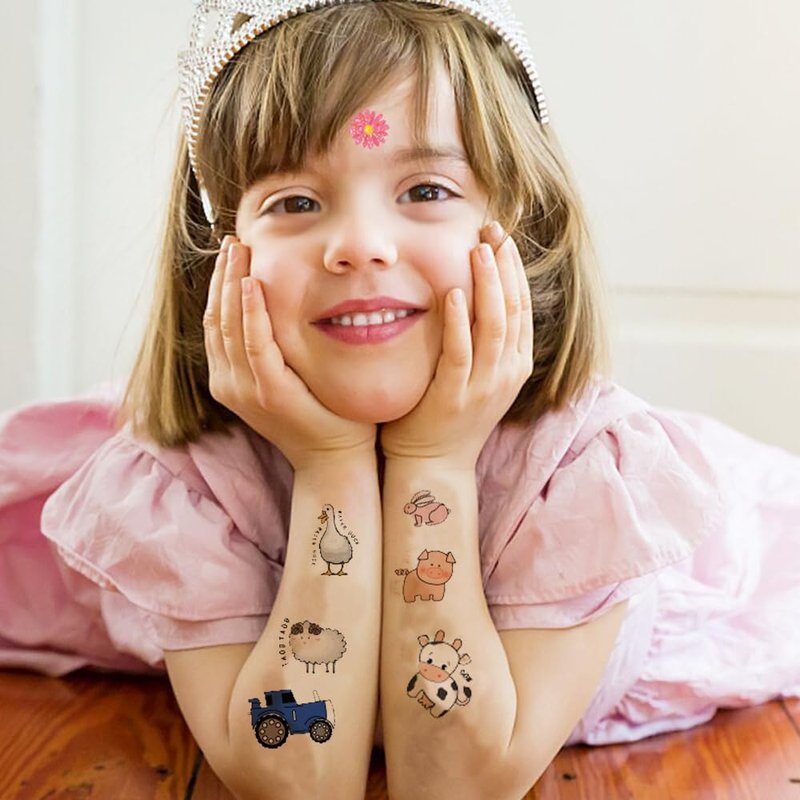 - SAFE MATERIAL: You don't have to worry that these tattoo stickers will hurt your kids, they are absolutely safe. Non-allergic, and waterproof and sweat-proof. You can use them at farms, festivals and parties with complete peace of mind.