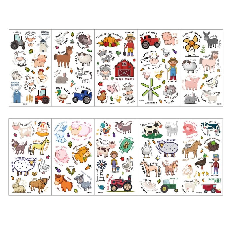 - PACKAGE INCLUDES: You will receive 10 sheets of fun and cute farm tattoo stickers with about 100+ patterns in total. There are many patterns and plenty of them are loved by kids and adults, perfect for DIY or sharing with others.