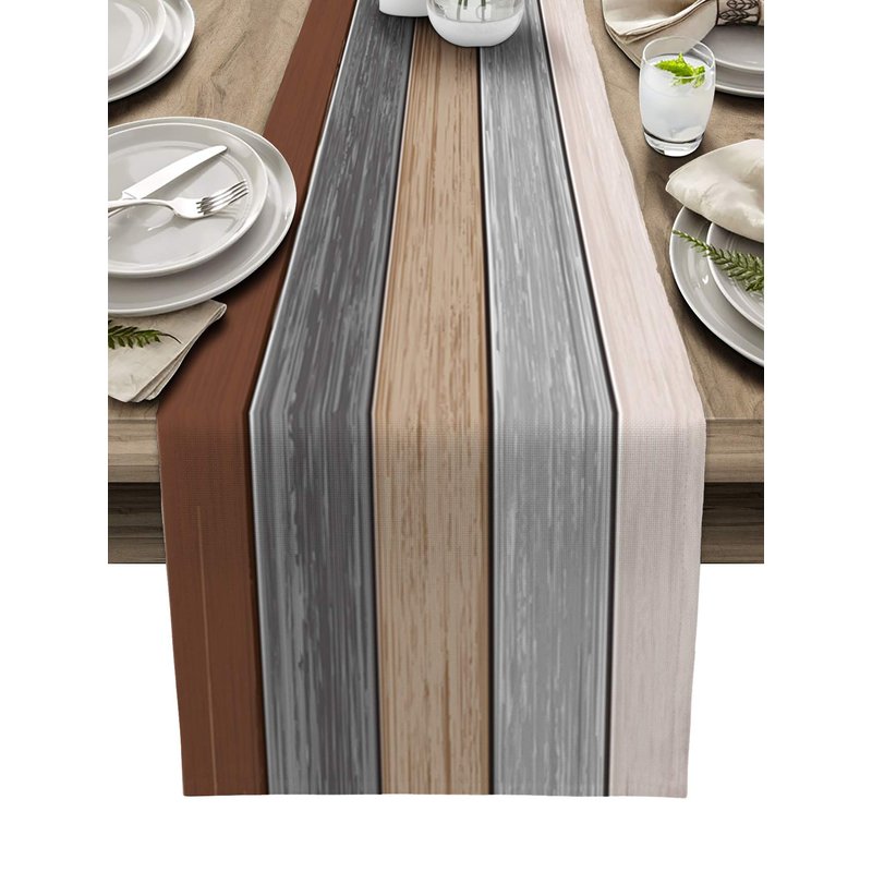 - [Farmhouse Table Decorations]: This Brown Grey Table Runner has Farmhouse Style Wood Texture Pattern with Vivid And Vintage Color,Not Fading And Bleeding. Match Well With Tablecloths,Placemat Sets,Napkins Or Other Decorative Table Centerpieces .Measures:13 Wide X 70-72 inces Long,Can Seat 4-6 People