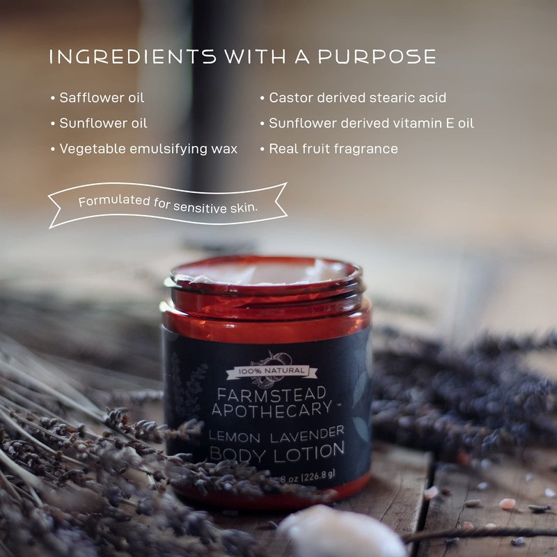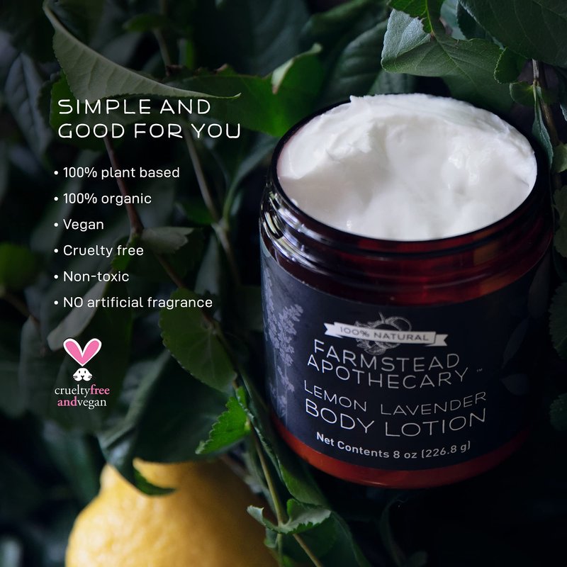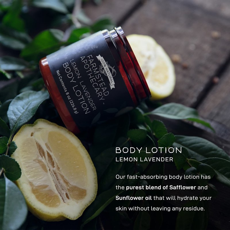 Farmstead Apothecary 100% Plant Based Body Lotion with Organic Safflower Oil, Organic Sunflower Oil & Organic Vitamin E Oil, 8 Oz (Lemon Lavender)