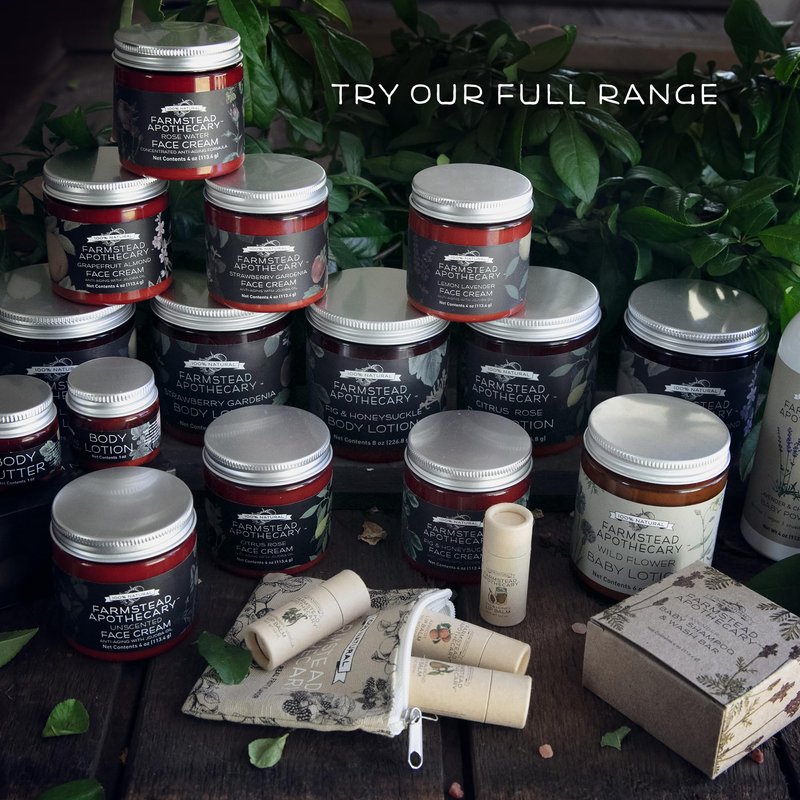 - FARMSTEAD APOTHECARY - We believe that it's not only important what you put in your body, but also what you put on your skin. Our skin absorbs a significant amount of the products we apply. When you're using synthetic products, you can bet that bad stuff is getting into your body. Using products like lotions, face wash, and hand soap builds up in your system . You can trust that you're putting truly wholesome natural products on your body, and no longer need to compromise on quality.
