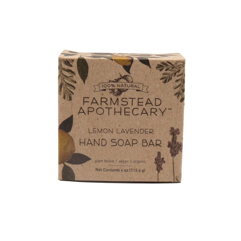 - LEMON LAVENDER HAND SOAP BAR - We converted our liquid hand soap to a solid bar. Same gentle formula, minus the plastic! Farmstead's 100% plant based and organic hand soap is made with minimal skin nourishing ingredients, and scented with real fruit, herbs, and nuts. Your hands will be clean without drying out your skin like other soaps. Clean, balance, and protect with hand soap harvested from nature.