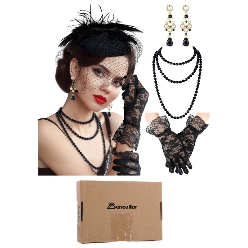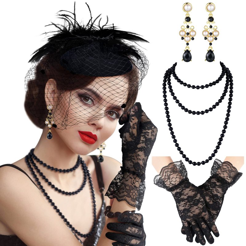 - Package Content: you will receive 1 piece of tea party hat, 1 piece of black bead necklace, 1 pair of lace gloves, and 1 pair of pearl drop earrings, the combination can meet your daily and party wear needs; You can also share them with your family