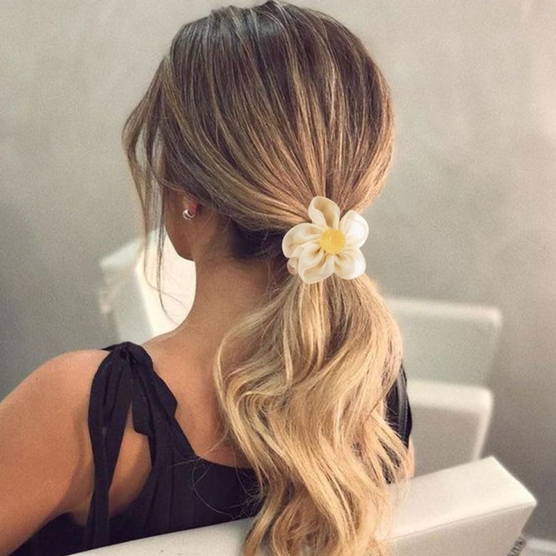 - Flower hair scrunchie is measured about 7cm /2.75 inches.Pearl hair ties can not only be used to fix your ponytail but also be used as a bracelet,and the elastic material is not easy to break,it can keep the hair firm and not easy to spread.