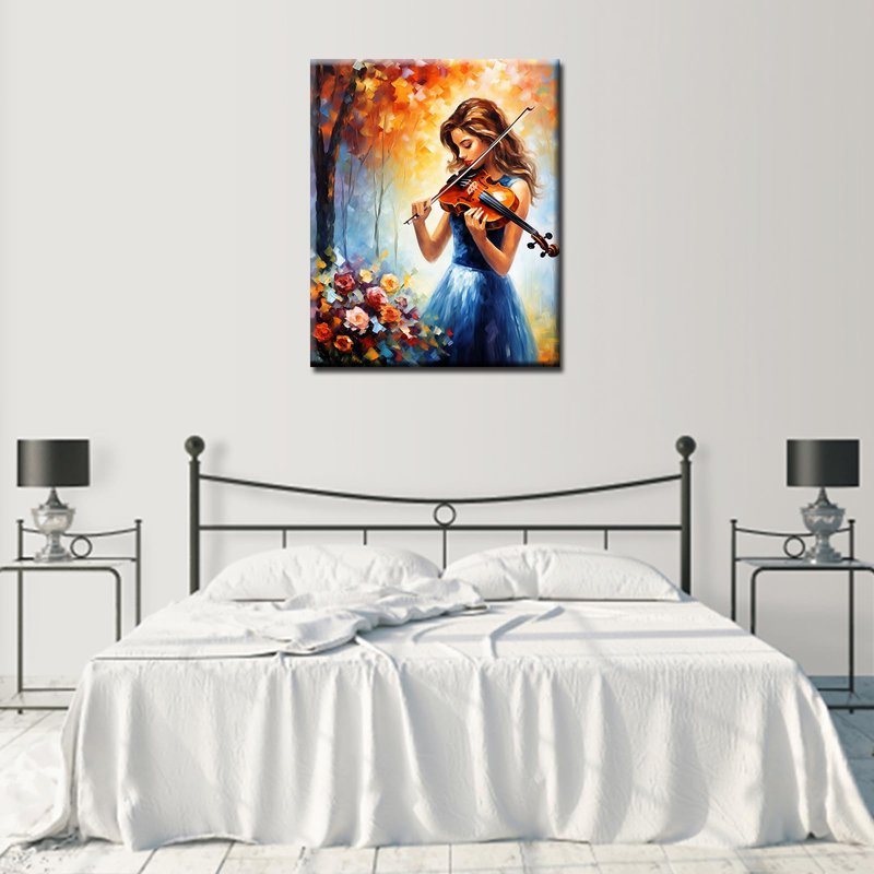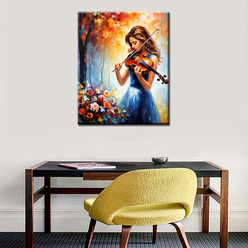 Fashion Girl Playing Violin Oil Painting Women Musician Paint by Number Kits 16 x 20 inch Canvas Decor Flowers DIY Paintwork for Kids Adults Beginner with Brushes and Acrylic Pigment (Without Frame)