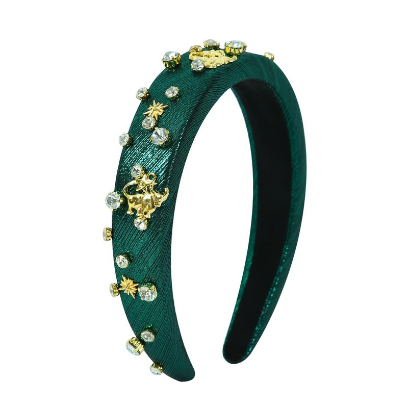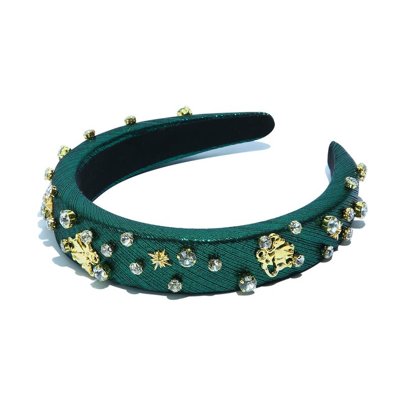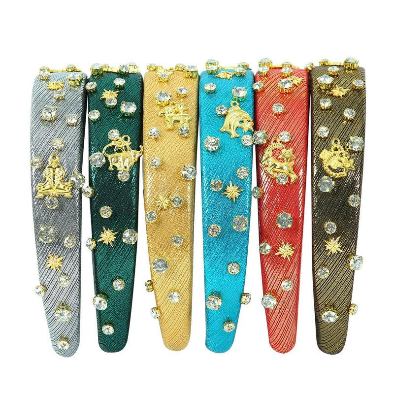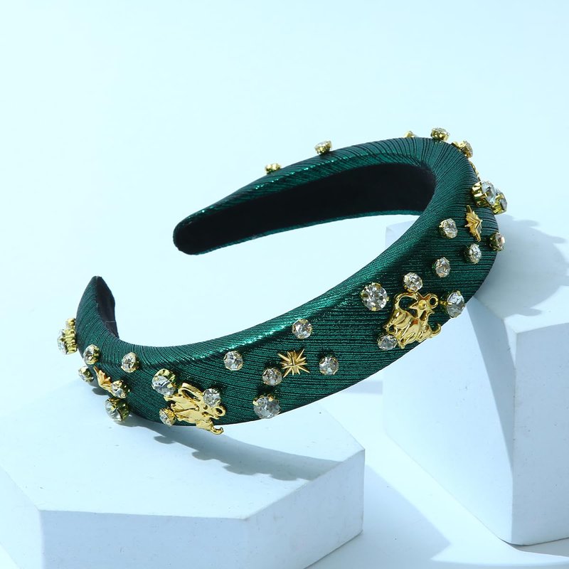 Fashion Green Padded Headband Constellation Birthday Hair Band Zodiac Sign Taurus Crystal Jewled Headband Vintage Hair Accessories