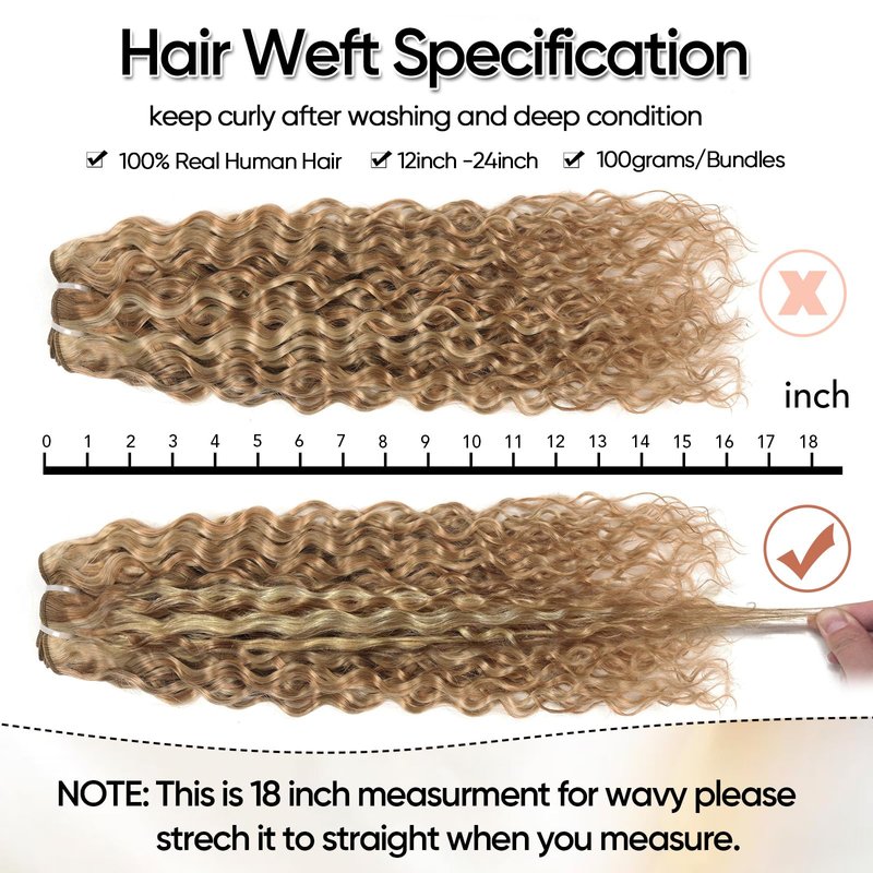 - Hair Specification:P27/613 Mixed Blond Color, Water Wave Hair Style, Stretched Length:12-24INCH Available,(Considering Light and Monitor, Ponytail Color May be Slightly Different From it Showed in the Picture)