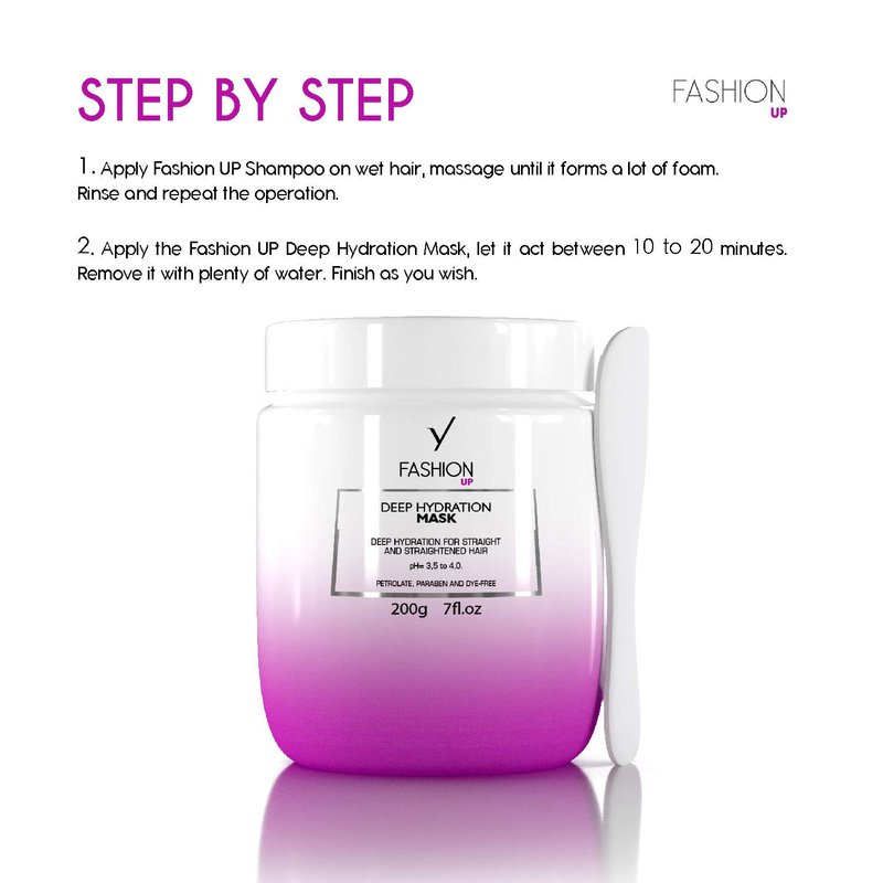 - Color and Straightener Safe for All Hair Types, gentle and effective care for all hair textures; Fashion UP Mask is compatible with any previous treatment applied on the hair; its formulation has an exclusive molecule that neutralizes the odor left by progressive smoothing; you can use it on a daily basis to care for dehydrated hair