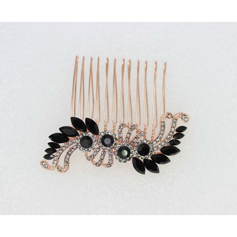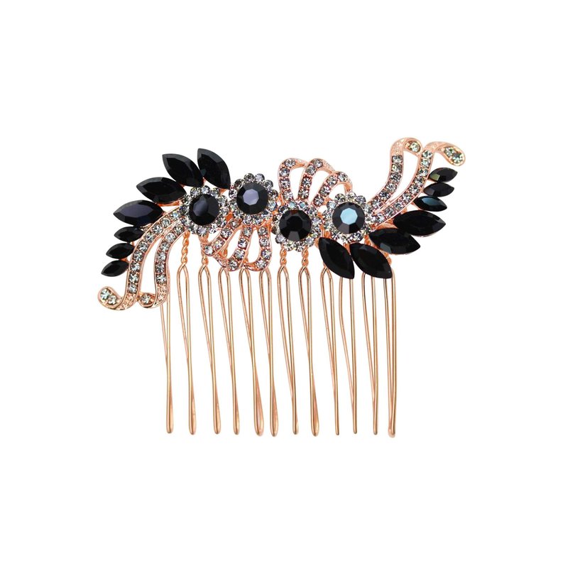 Faship Black Rhinestone Crystal Rose Gold Plated Floral Hair Comb