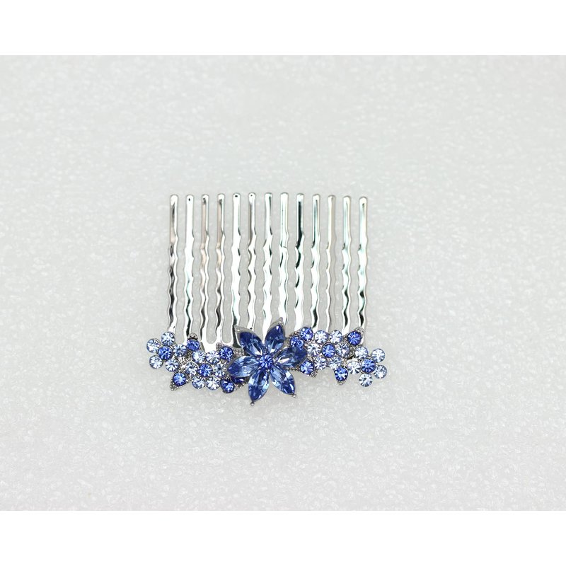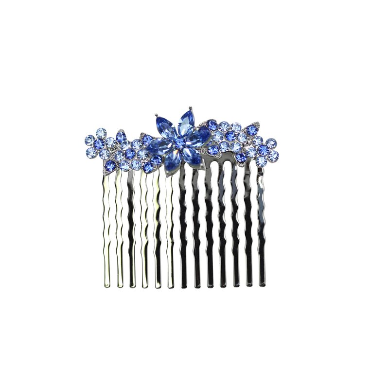 Faship Gorgeous Blue Rhinestone Crystal Floral Small Hair Comb