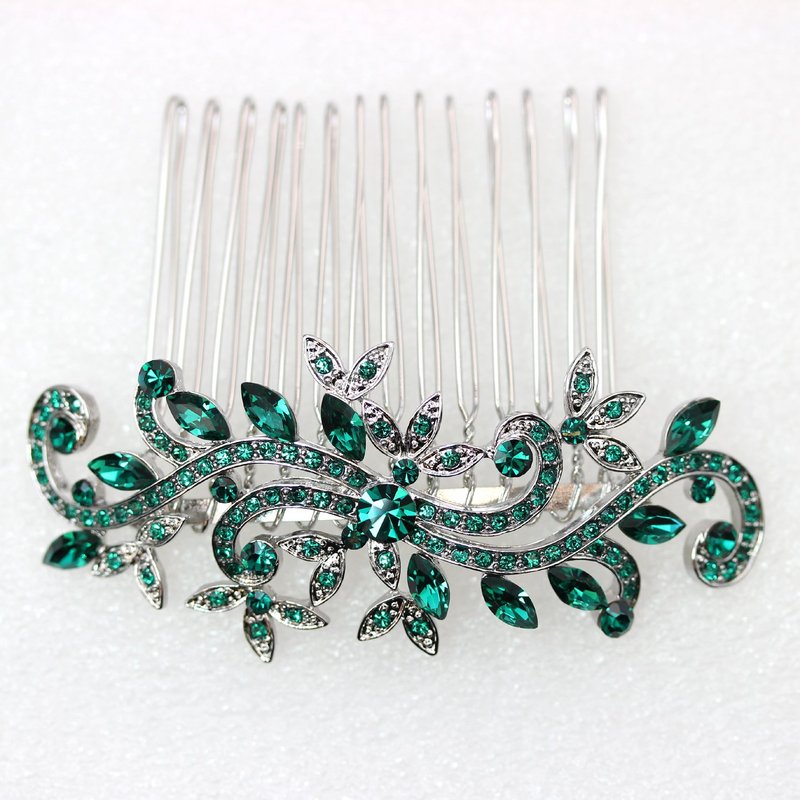 Faship Gorgeous Green Crystal Floral Hair Comb
