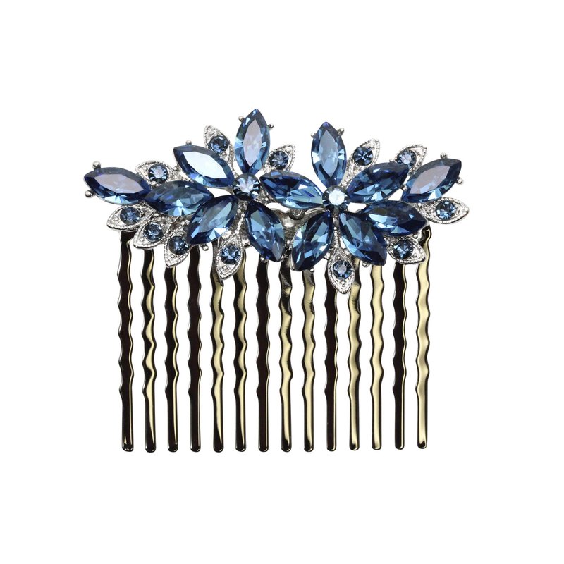 Faship Gorgeous Navy Blue Rhinestone Crystal Floral Hair Comb