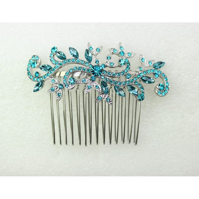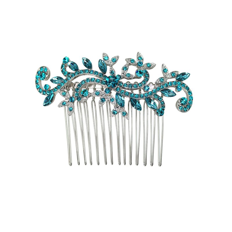 Faship Malibu Blue Teal Crystal Floral Hair Comb