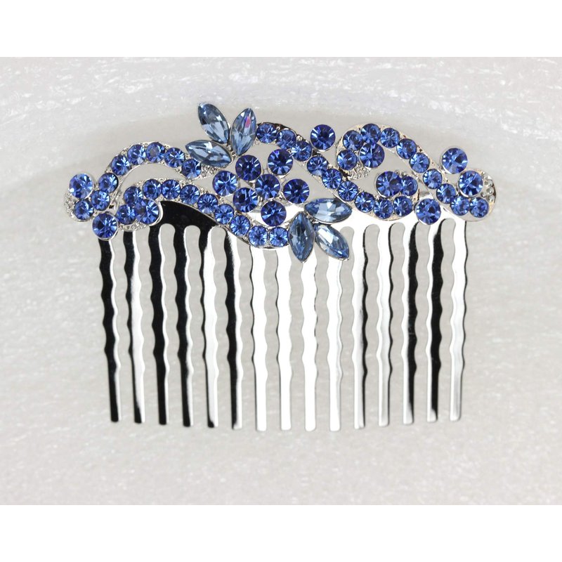 Faship Sapphire Color Blue Crystal Floral Hair Comb