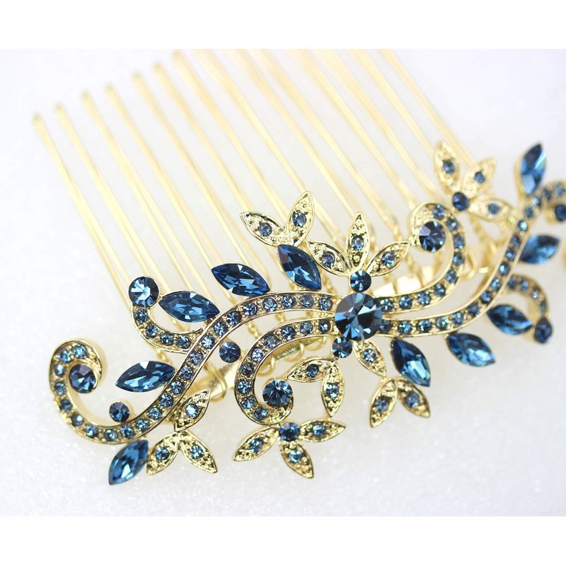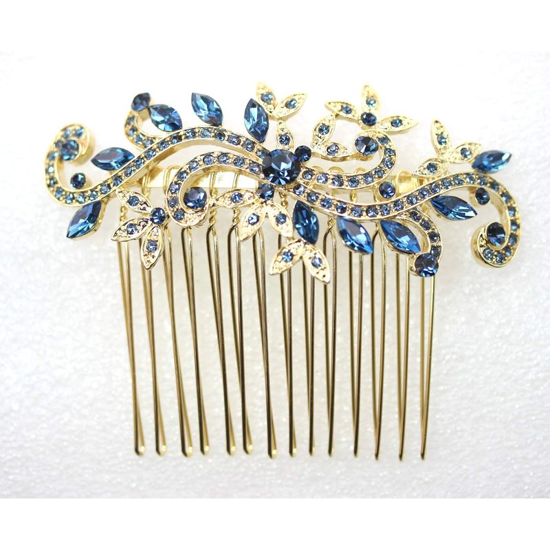 Faship Sparkling Navy Blue Crystal Floral Hair Comb