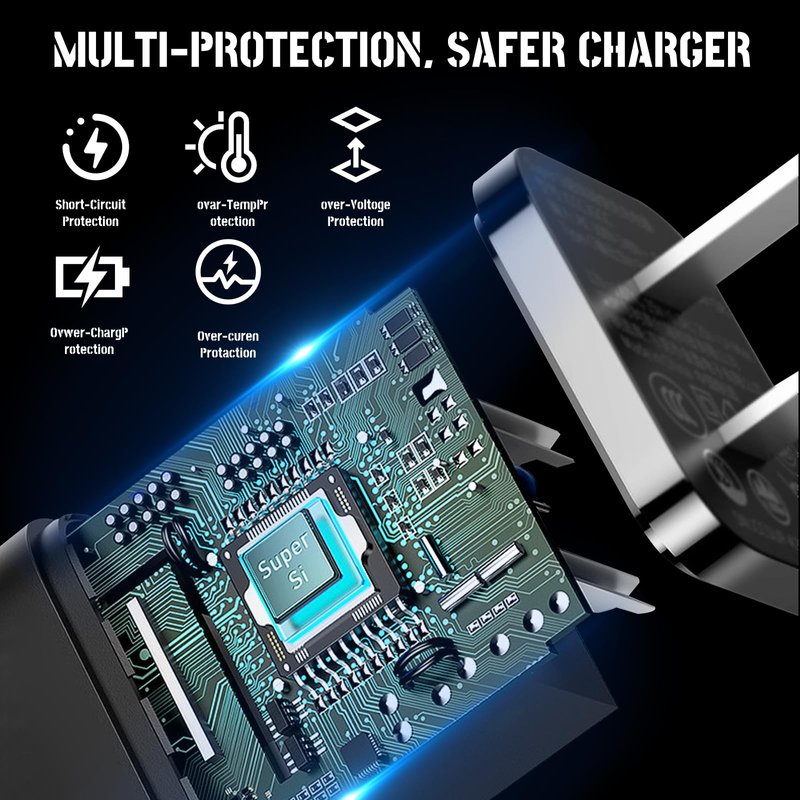- 【Security Assurance】Approved for FCC-CE certification ,Charger with IC chip inside is designed to identify fully charging with safety usage,Protection against over charging,over currents, and over heating,Charging stops when battery is full, USB Cable Using high-quality PVC flame-retardant materials, Durable, long service life, free winding, no knots, no creases.