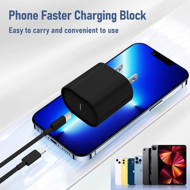 - Fast Charger for i Phone : 20W phone 14 type c charger block with USB C to L cable 6ft, it only takes 30 minutes to charging for iPhone 13 to more than 50%