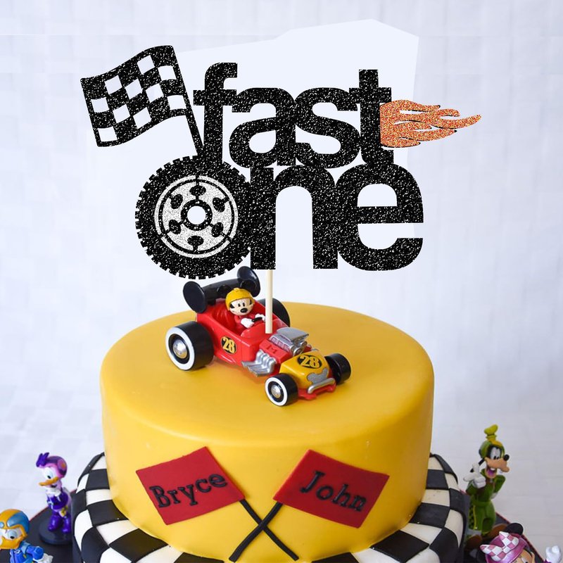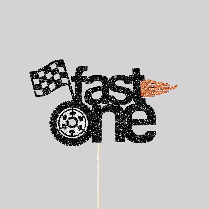 Fast One Cake Topper Racing 1st Birthday Cake Topper Glitter 1st Birthday cake topper for Boys Girls Racing Themed Car Birthday Decoration Party Supplies