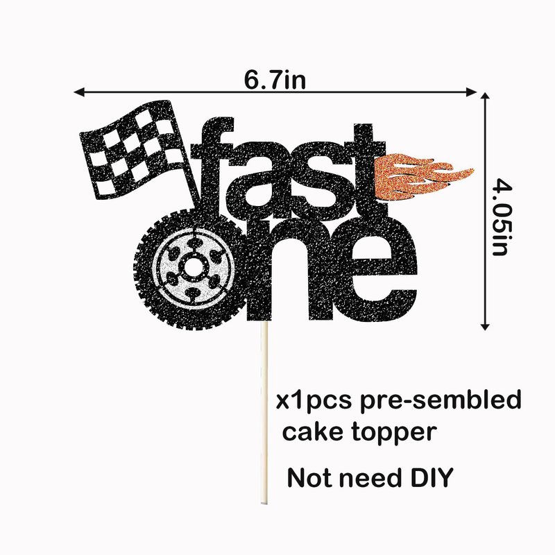 - You will get: 1Pcs Glitter fast One Cake Topper (presembled already,you can just insert into the cake directly)