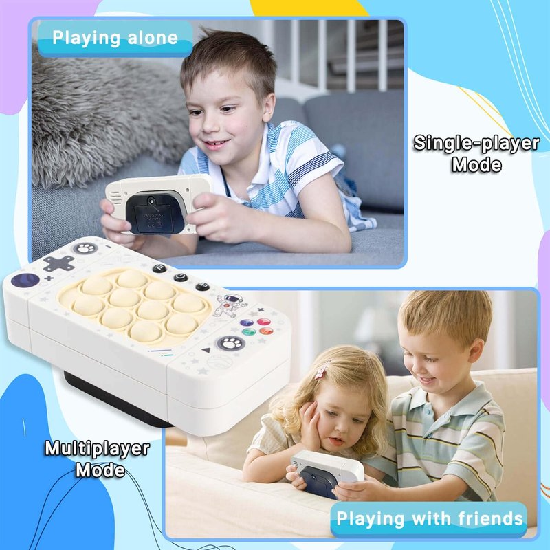 - 【4 Game Modes】: Level-breaking mode has 50 major levels, each with 5 small levels. Memory mode has 9 major levels, each with 5 small levels. Scoring mode is all about pressing as many lit bubbles as possible within a minute to achieve the highest score. And with multiplayer mode, kids can compete against each other by pressing all the lit bubbles and then passing the game toy to the next player.