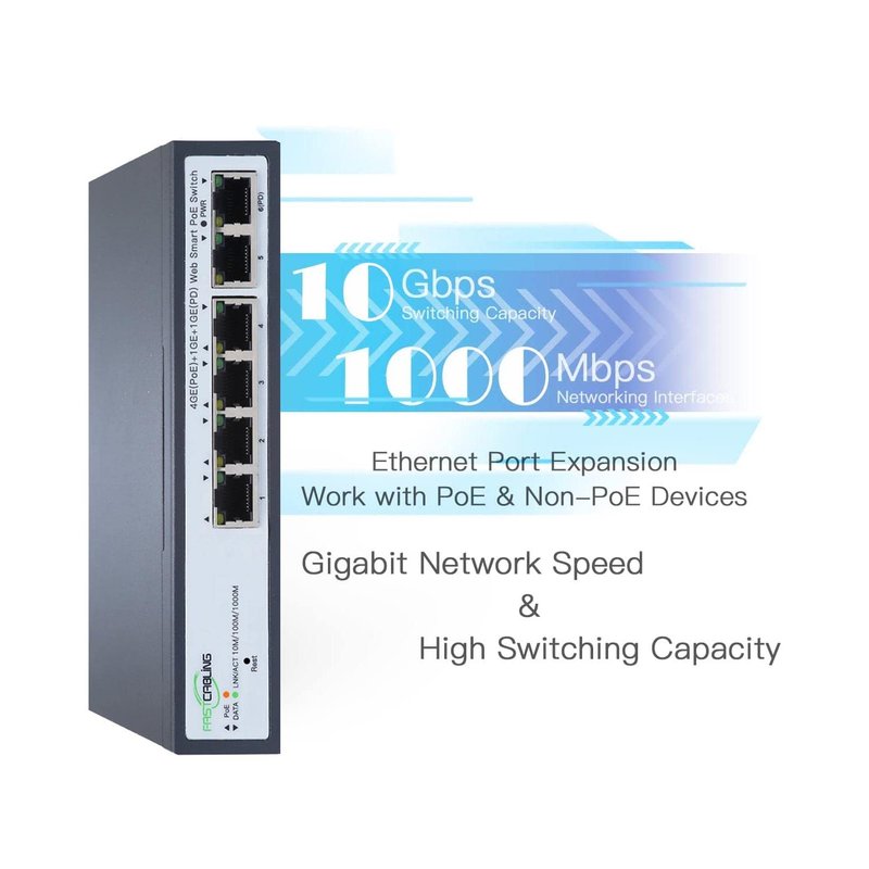 PoE Powered Switch is a powerful device with high power budget to receive power and data from the back-end PSU and pass through to front-end IP devices. Expanding network ports for multiple IP-based powered devices in an easy way. The switch allows you to expand network access in a rational quantity, saving unnecessary costs, meanwhile repeating the network capability for another 100 meters. Working with Fastcabling IEEE802.3bt standard PoE injector or PoE switch, the whole system will provide 65W remaining power. This switch is designed to supply PoE for IP devices, such as IP cameras, access points, and VoIP phones that are deployed in the field where the power source is difficult to acquire. The PoE ports comply with IEEE802.3at (PoE+) standards. Each PoE port is capable of outputting a maximum power of up to 30W. Managed network switch ensures high security and efficiency. It comes with powerful traffic management and QoS features, offering MAC address filtering and VLAN capabilities as long as static routing features so you can segregate networks and remote access to ports. The PoE switch is in compact size but high power budget as well as a quiet fanless, natural cooling design. It is an ideal solution for space-constrained places. With a plug-and-play and PoE-enabled design, the installation is easy and fast. The switch can work under a temperature range from -0℃ to 40℃.