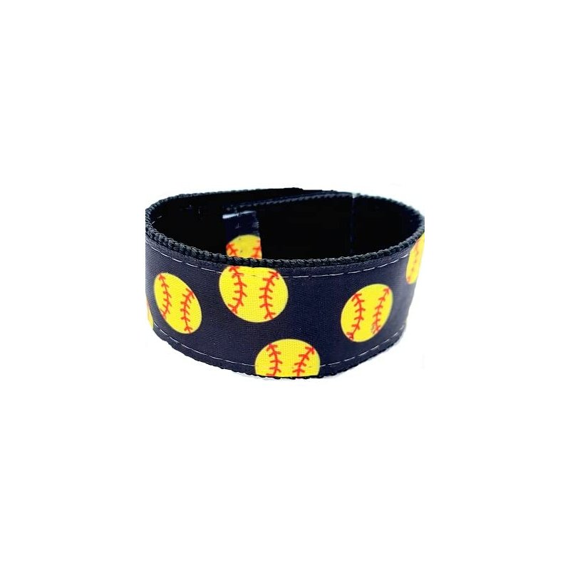 Fastpitch Softball Sleeve scrunchies black with yellow fast pitch softballs on them. This is from the ORIGINAL and PATENTED company who invented them. . One step enclosure Washable and adjustable with Velcro on each end. Sleeve ties to hold up tee shirt sleeves perfect gift for the championship team or player. Softball sleeve holders, softball sleeve straps. Softball sleeve scrunch, softball sleeve tie ups, softball gift,