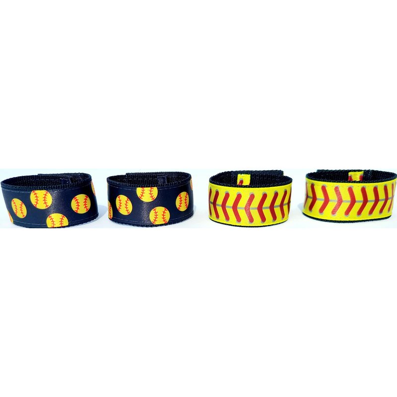 Fastpitch Softball sleeve scrunchies combo pack black (2) and yellow with red stitching (2) 2 pairs (4 pieces), softball sleeve holders from the ORIGINAL USA inventor. Over 8 million sold.