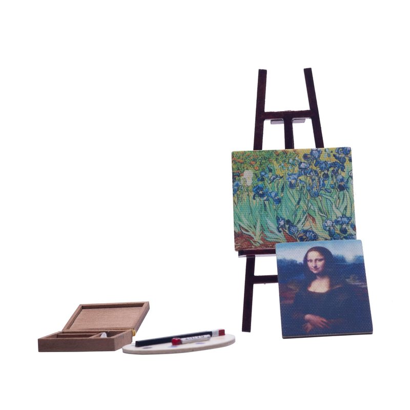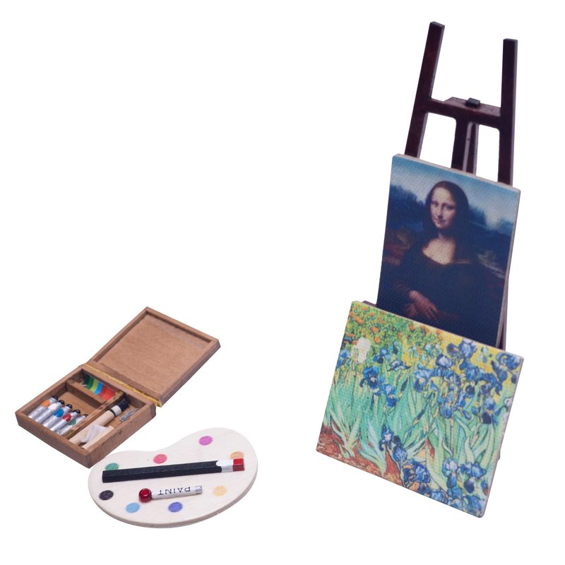 Fateanuki Doll House Accessory Oil Drawings Set Easel Miniature Dollhouse Toy Balcony Patio Furnitures Decoration Accessories 1 12 Scale