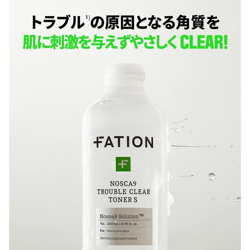 FATION NOSCA9 Trouble Clear Toner S | Hydrating Toner for Face w/Centella Asiatica, LHA & PHA | Gentle & Exfoliating Toner for Sensitive Skin | Calming Toner Korean Skin Care (Pack of 1, 6.76 Fl Oz)